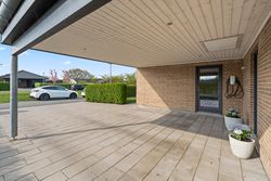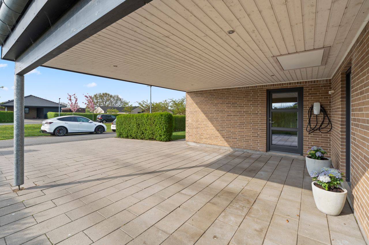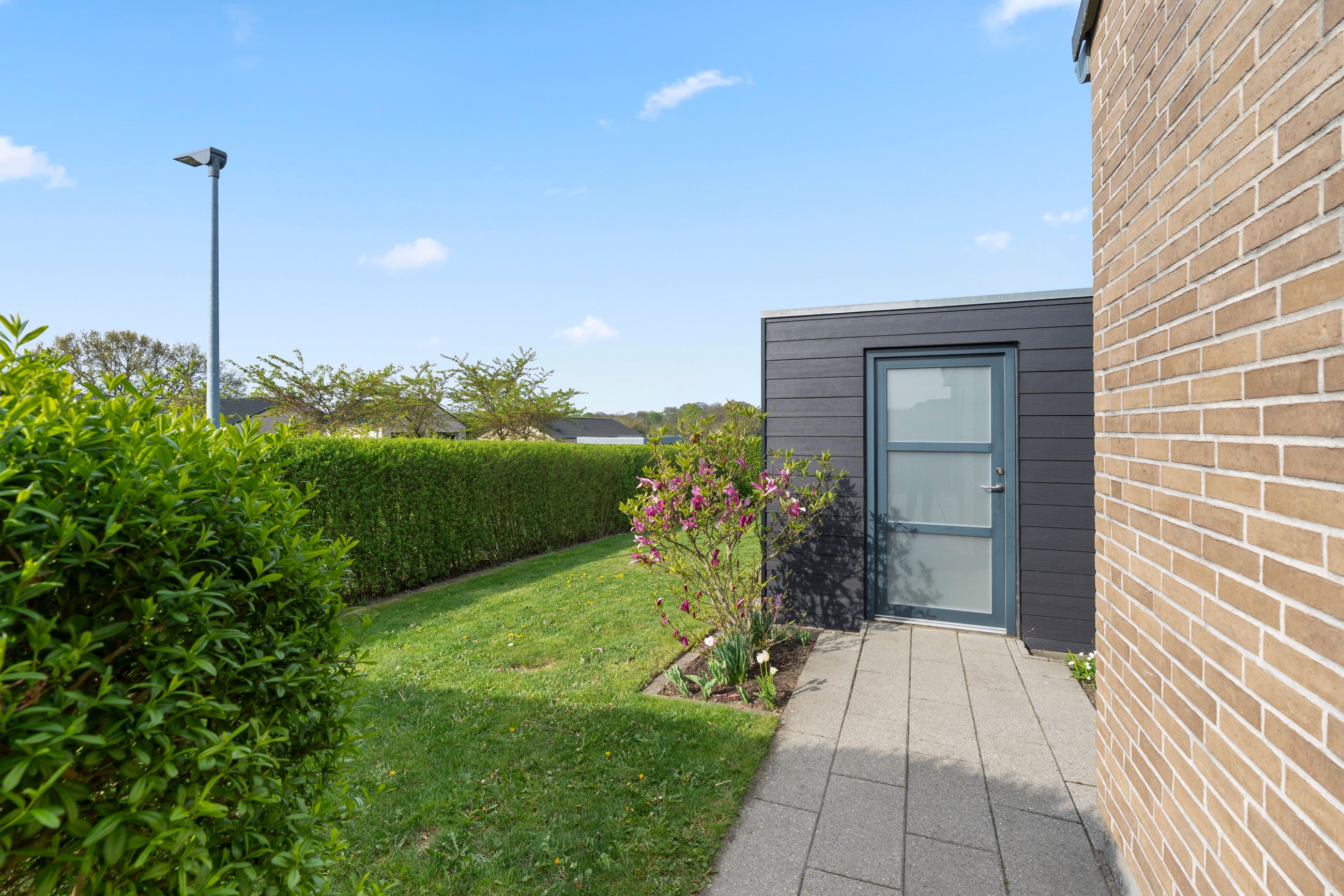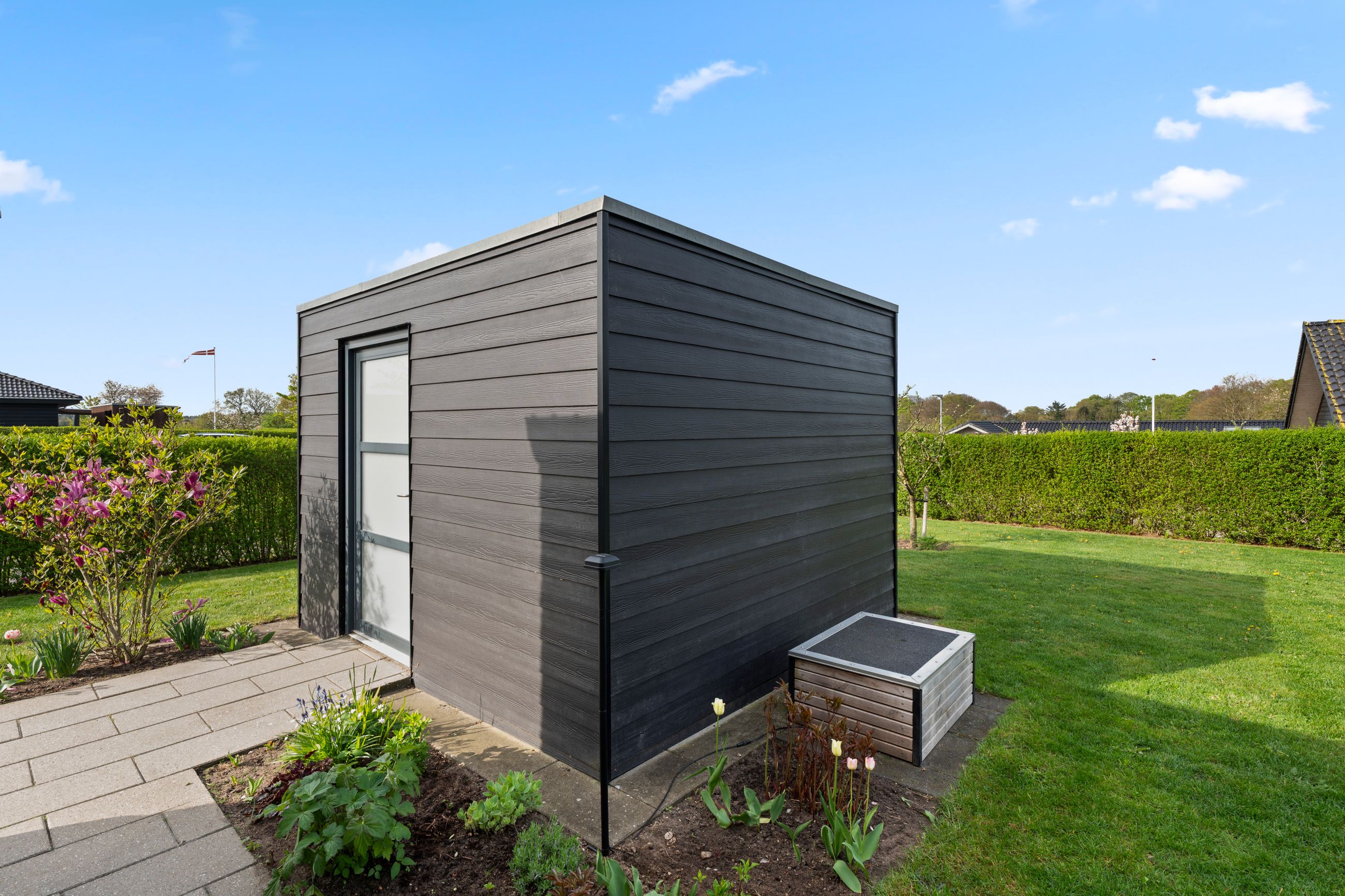 Udearealerne er lige så gennemtænkte som resten af ejendommen. Den 952 m2 store grund byder på en flot og velholdt have, en skøn og solrig terrasse med plads til både loungemøbler og spisebord samt flere hyggelige kroge til afslapning. Hertil kommer en carport på 29 m2 med plads til to biler og et praktisk udhus på 13 m2.