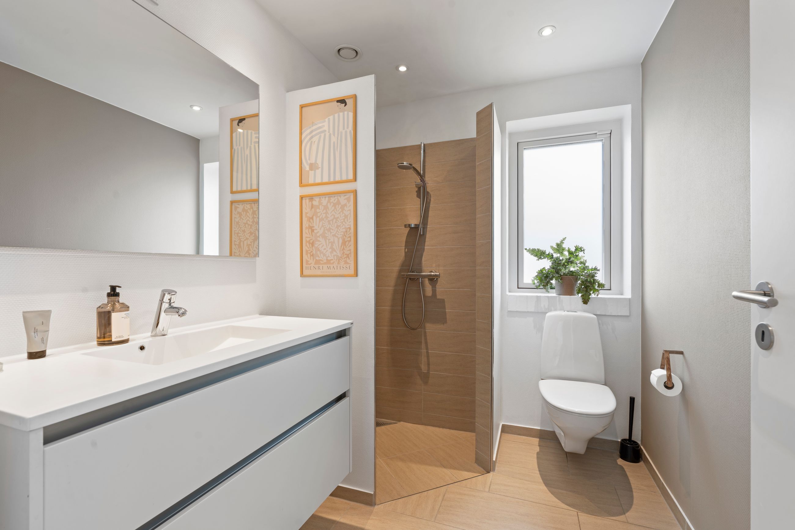Bryggerset er praktisk og velindrettet med god plads til både vask og opbevaring – lige til at gå til i en travl hverdag. Der er gulvvarme i hele huset og opvarmning via økonomisk jordvarme, som både giver lavere forbrugsudgifter og høj komfort året rundt.