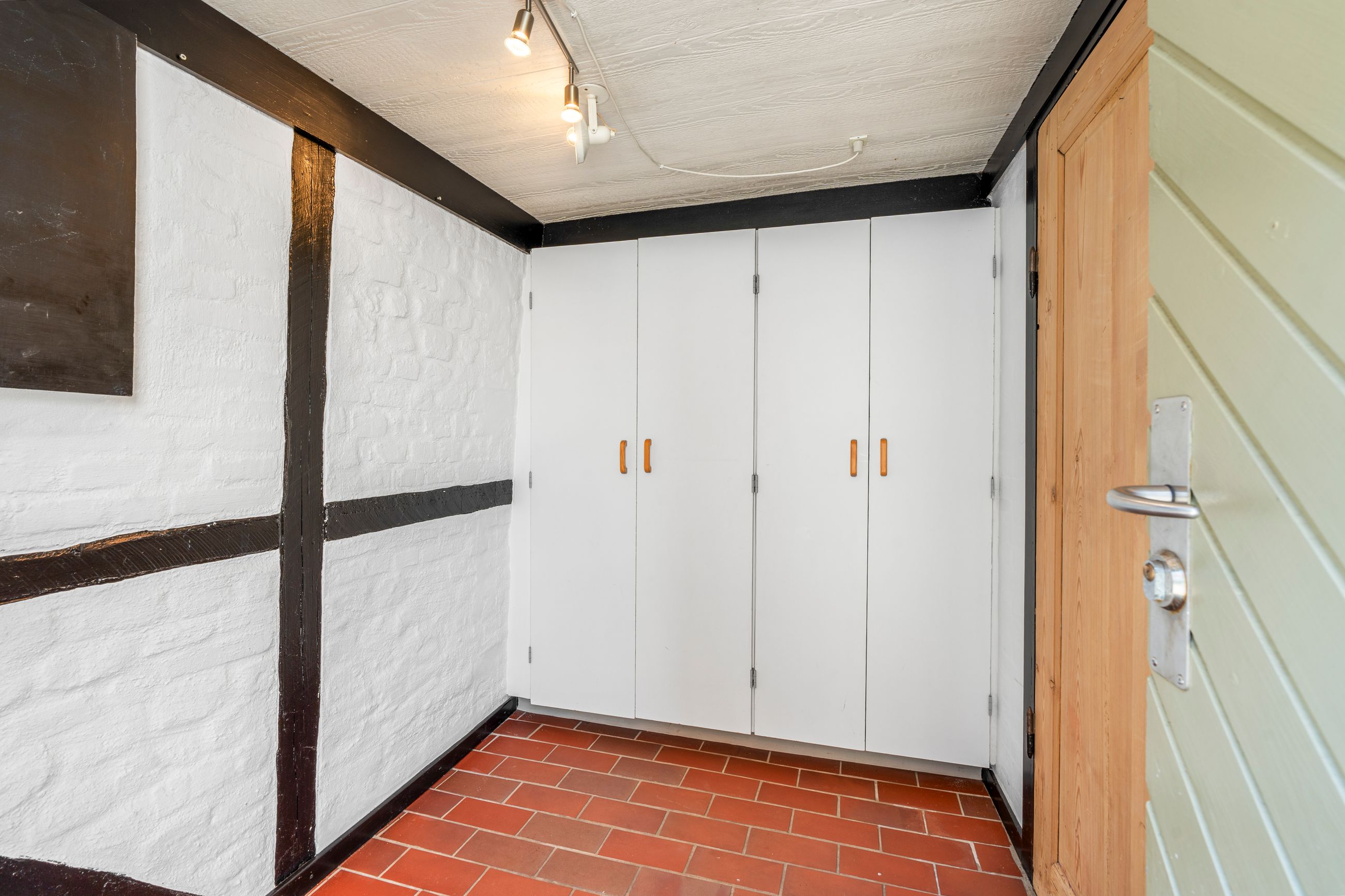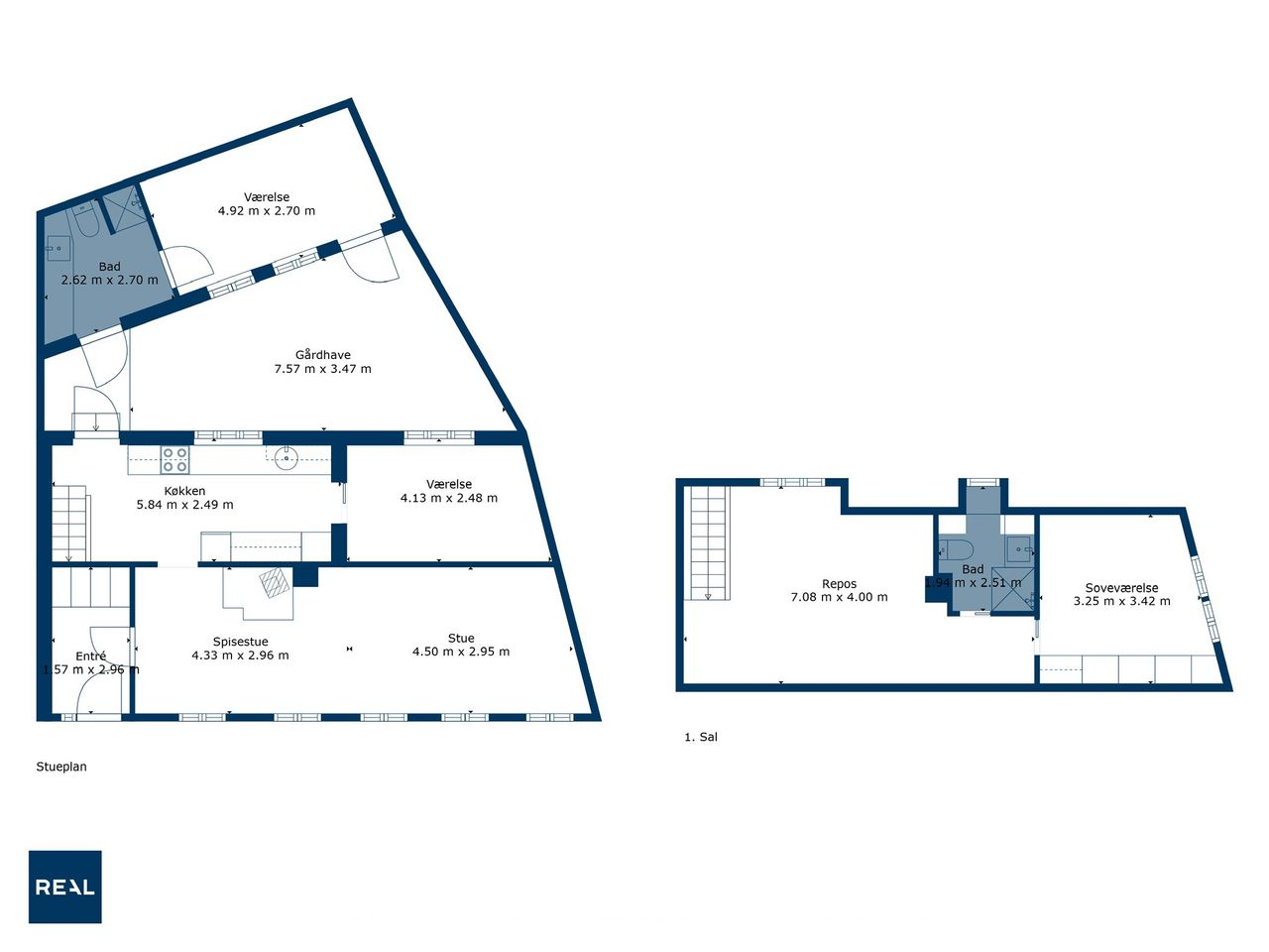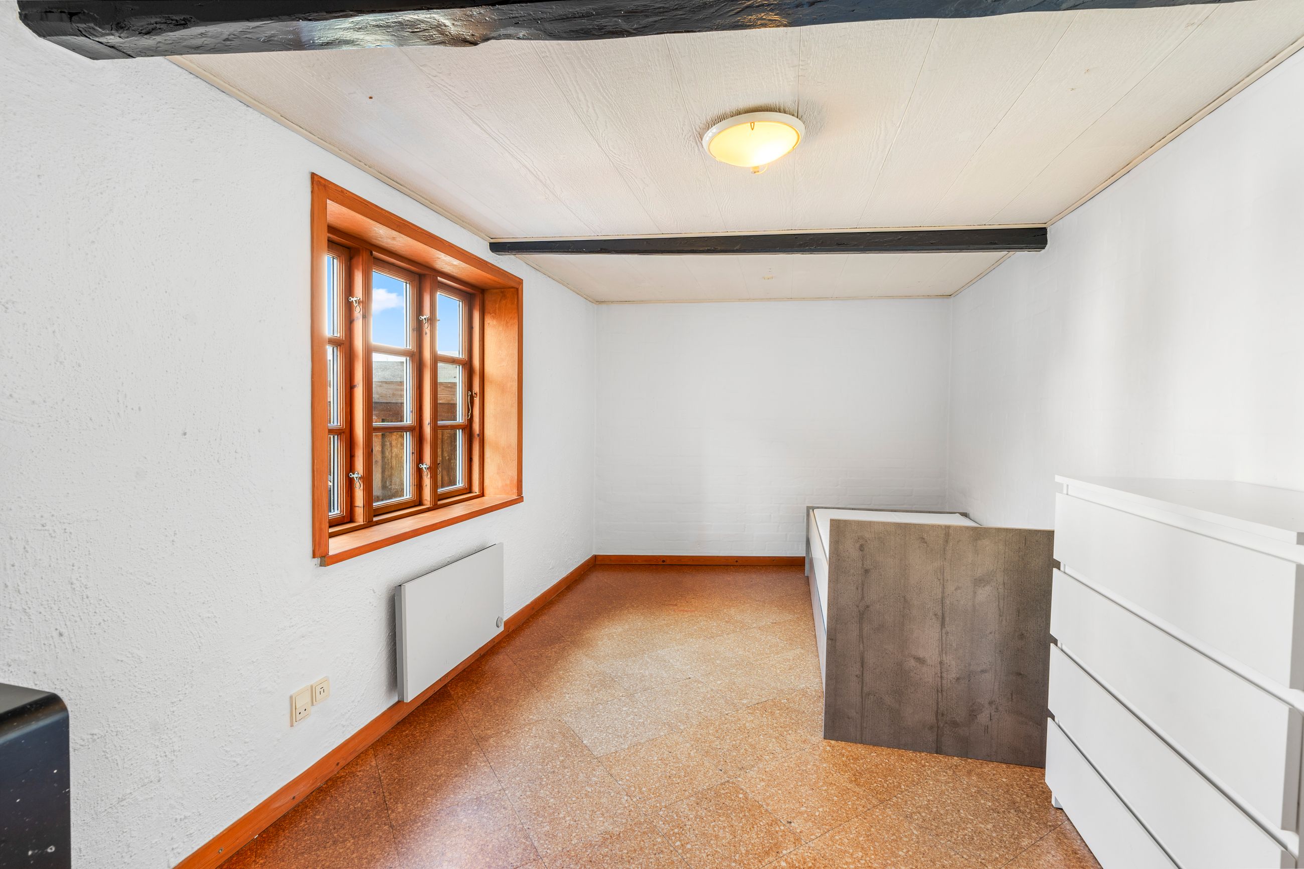 På førstesalen ligger det store soveværelse, et lyst badeværelse samt et rummeligt repos, der let kan indrettes til et ekstra værelse, hjemmearbejdsplads eller multirum. I udhuset er der desuden et ekstra toilet og endnu et disponibelt rum, som giver flere anvendelsesmuligheder – eksempelvis som opbevaring, vaskerum eller værksted.