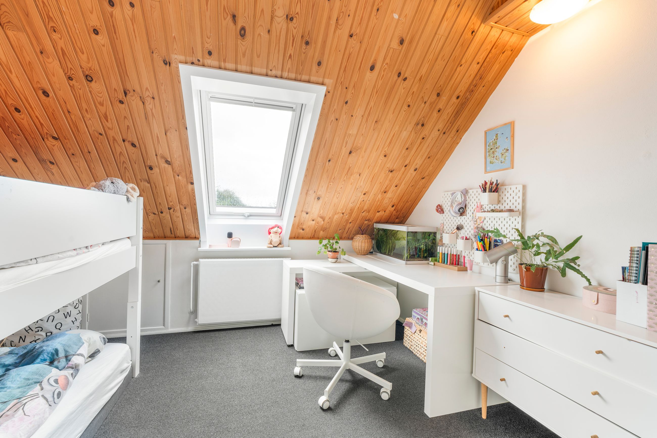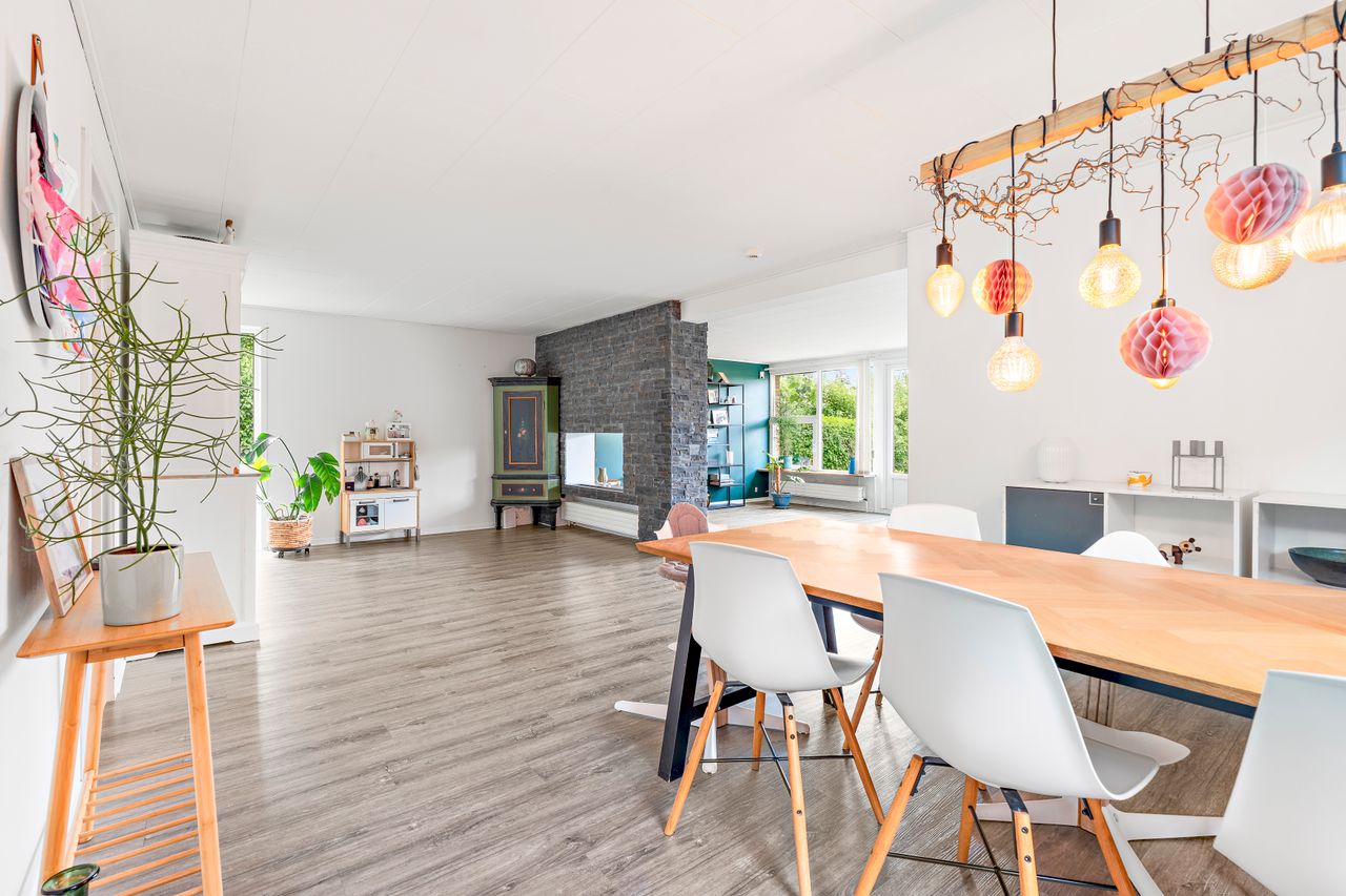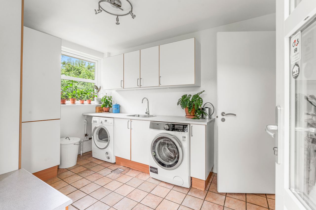 I stueplan finder du det store køkken-alrum i åben forbindelse med stuen, hvilket skaber et fantastisk leverum med lys, luft og plads til samvær. Herudover rummer huset fire regulære værelser, et stilfuldt badeværelse, et praktisk gæstetoilet samt gode opbevaringsmuligheder.