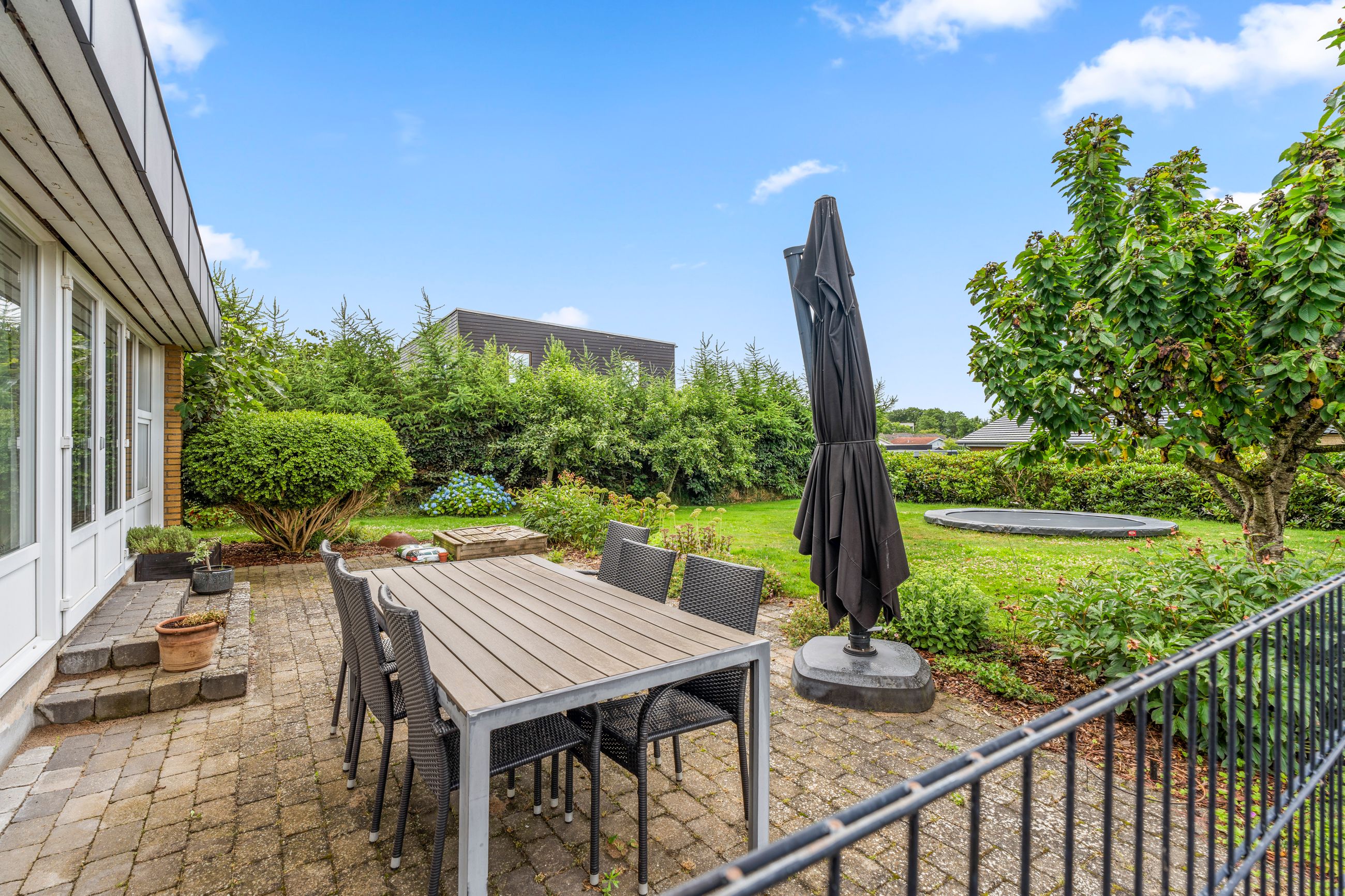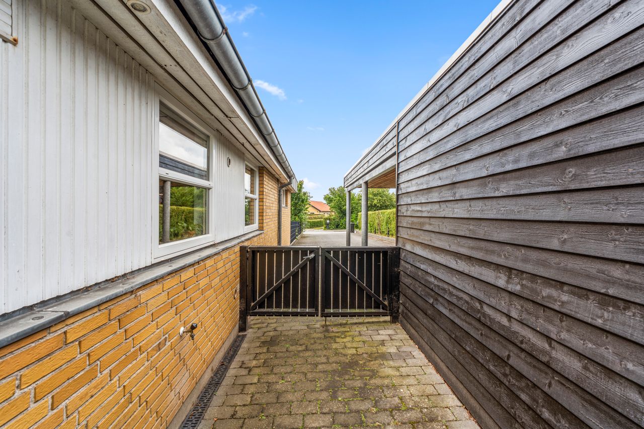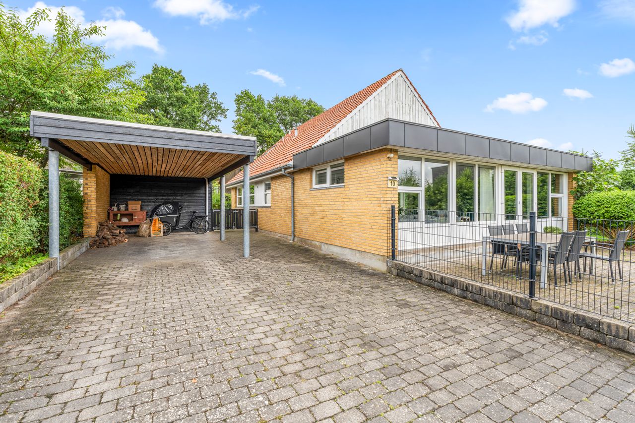 Udenfor venter en 817 m2 stor grund, hvor der er rig mulighed for leg, afslapning og udeliv. Derudover får du en carport på hele 44 m2 med plads til både bilen og ekstra opbevaring.