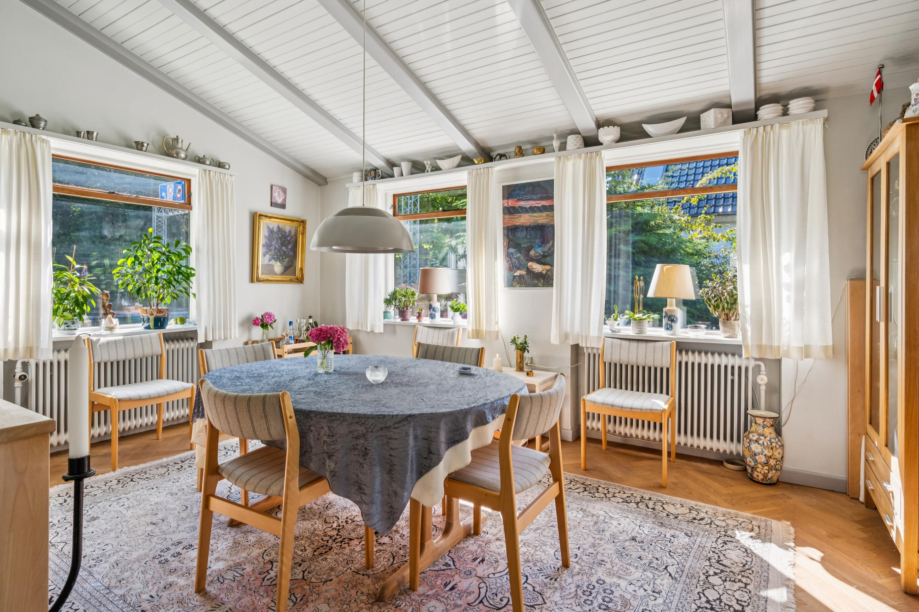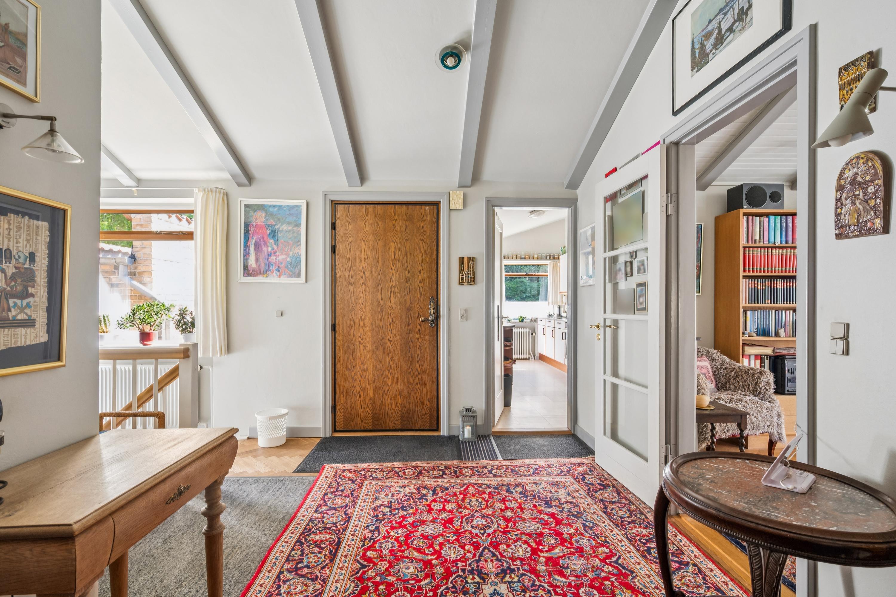 Meget charmerende villa med hyggeligt, sydvendt terrassemiljø og unikt lukket syd/vestvendt flot haveanlæg. Villaen byder på både funktionalitet og æstetik med en moderne indretning, gode materialer og skønne løsninger. Loft til kip overalt og de skønneste sildebens trægulve i opholdsrum.