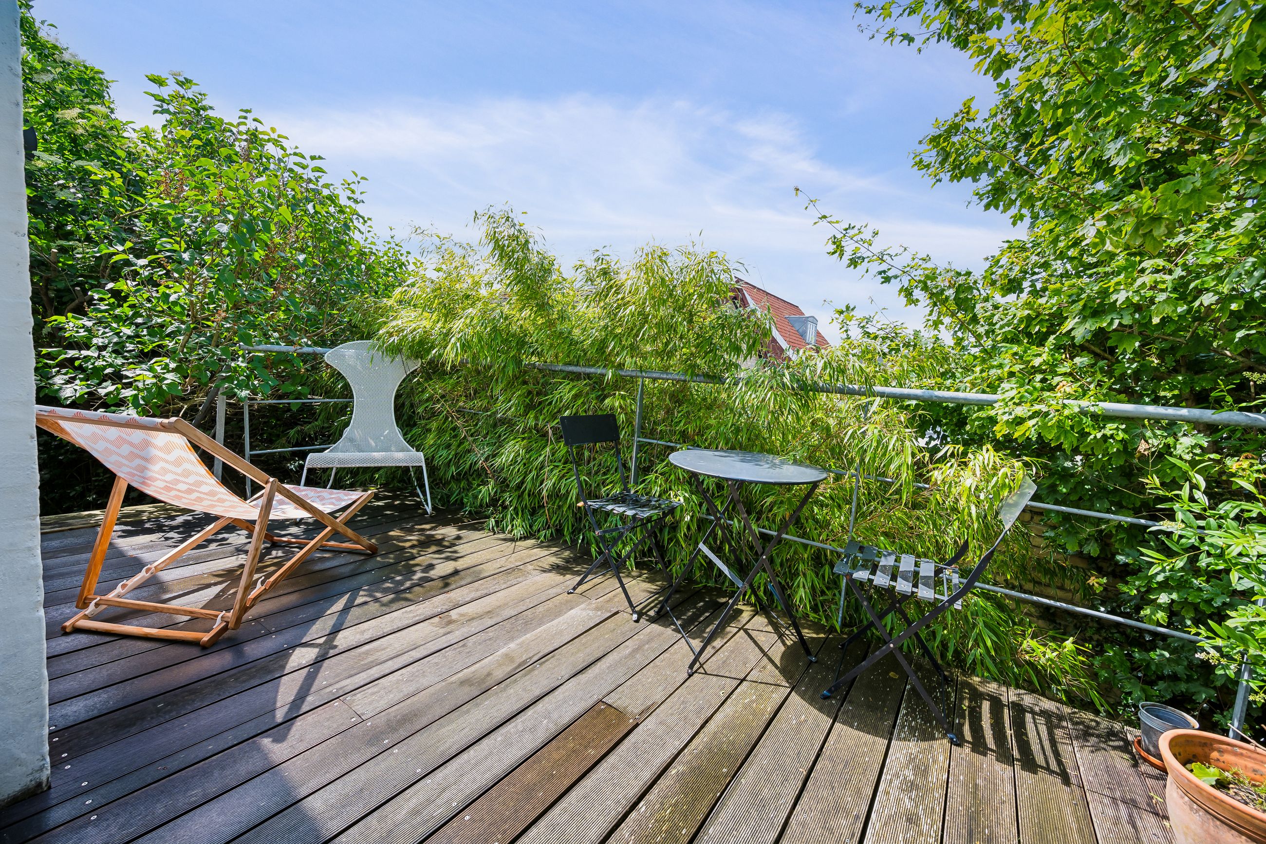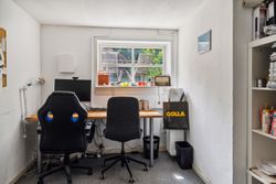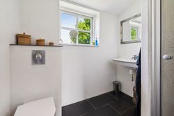 Kælderen tilbyder flere disponible rum samt et ekstra toilet med brus, hvilket gør det ideelt for gæster eller som teenager-afdeling. En nyere varmeinstallation sikrer energieffektivitet året rundt. Udenfor finder du en fuldstændig lukket have – børnevenlig og sikker – komplet med flere terrasser samt et charmerende legehus bygget oppe i træerne.