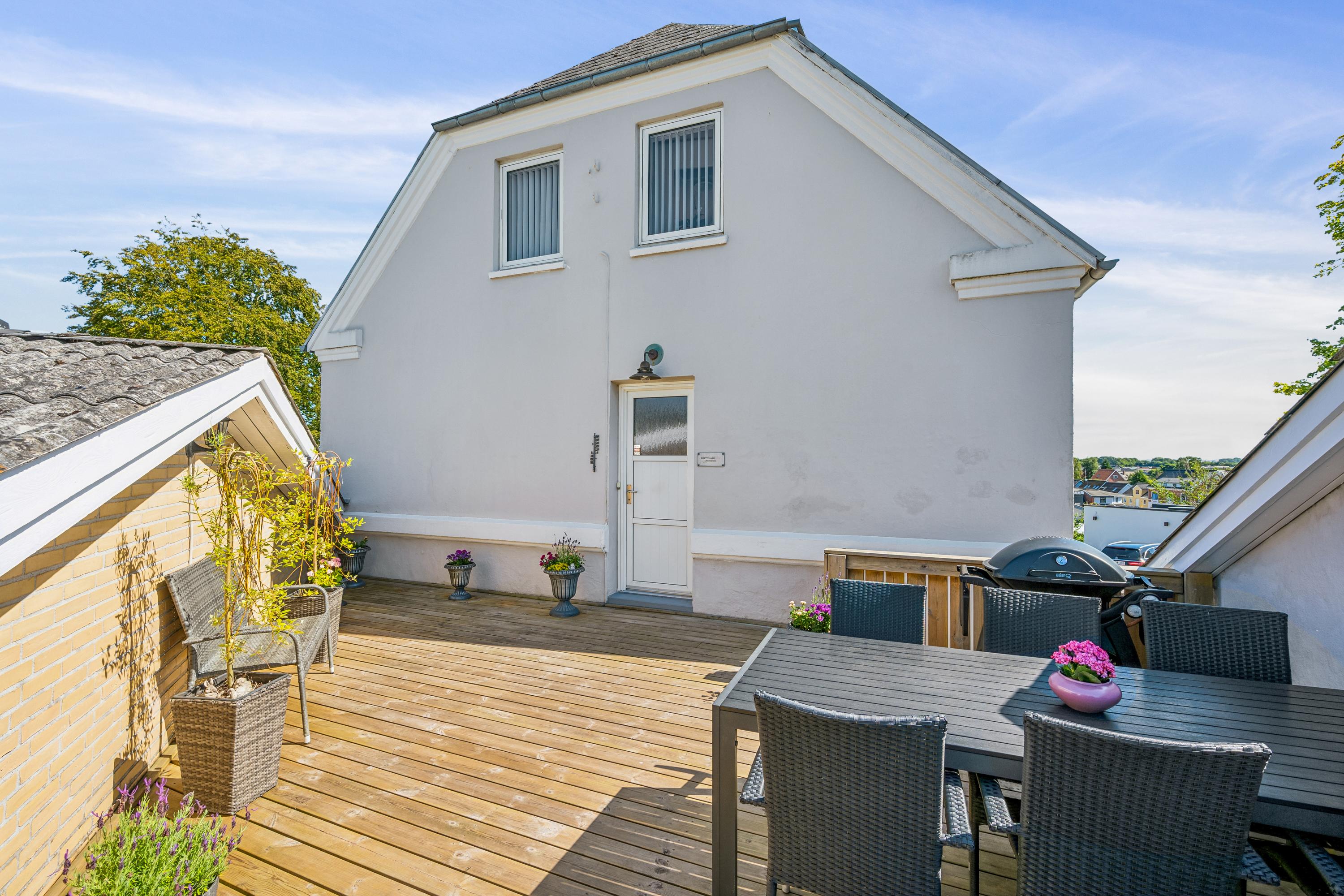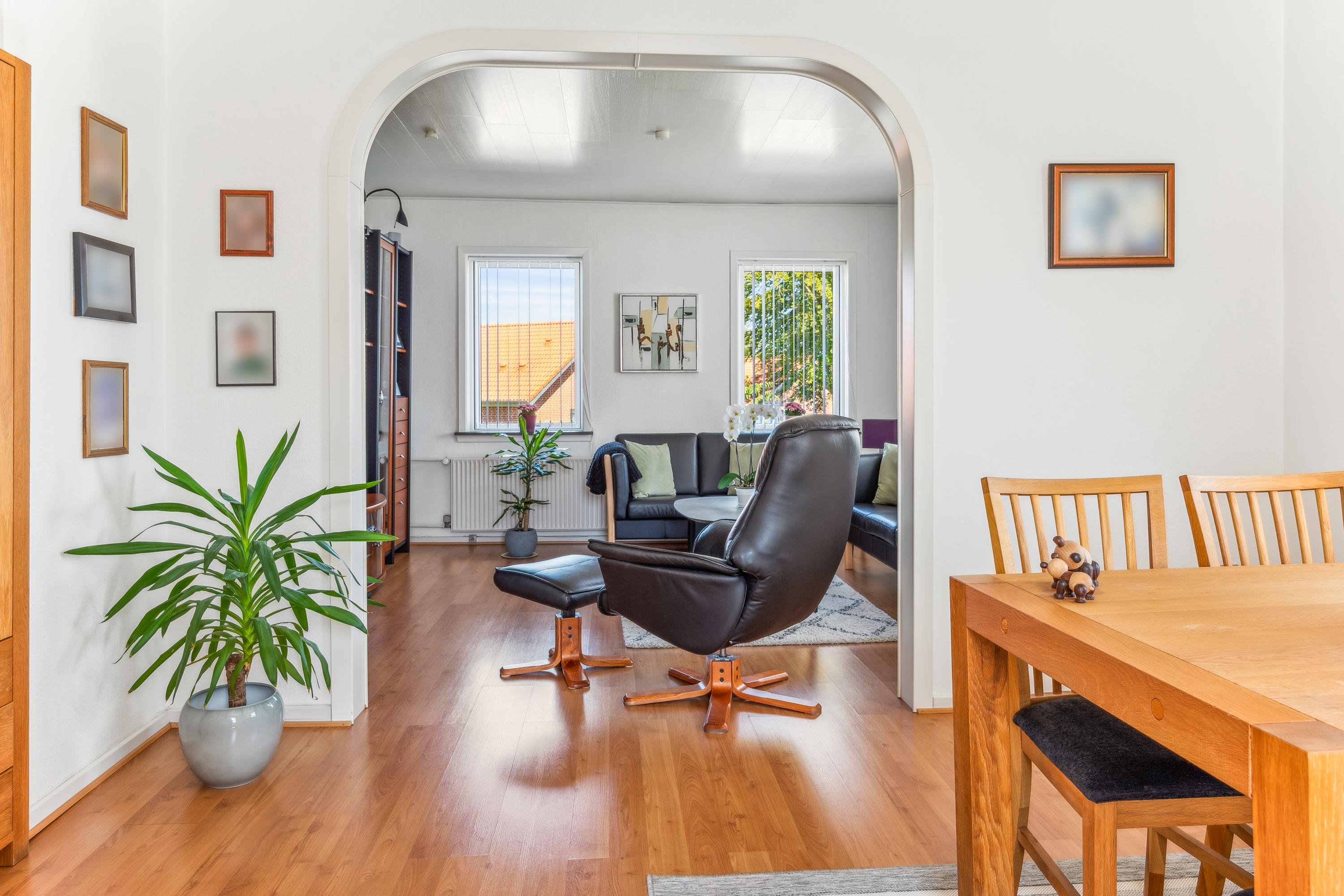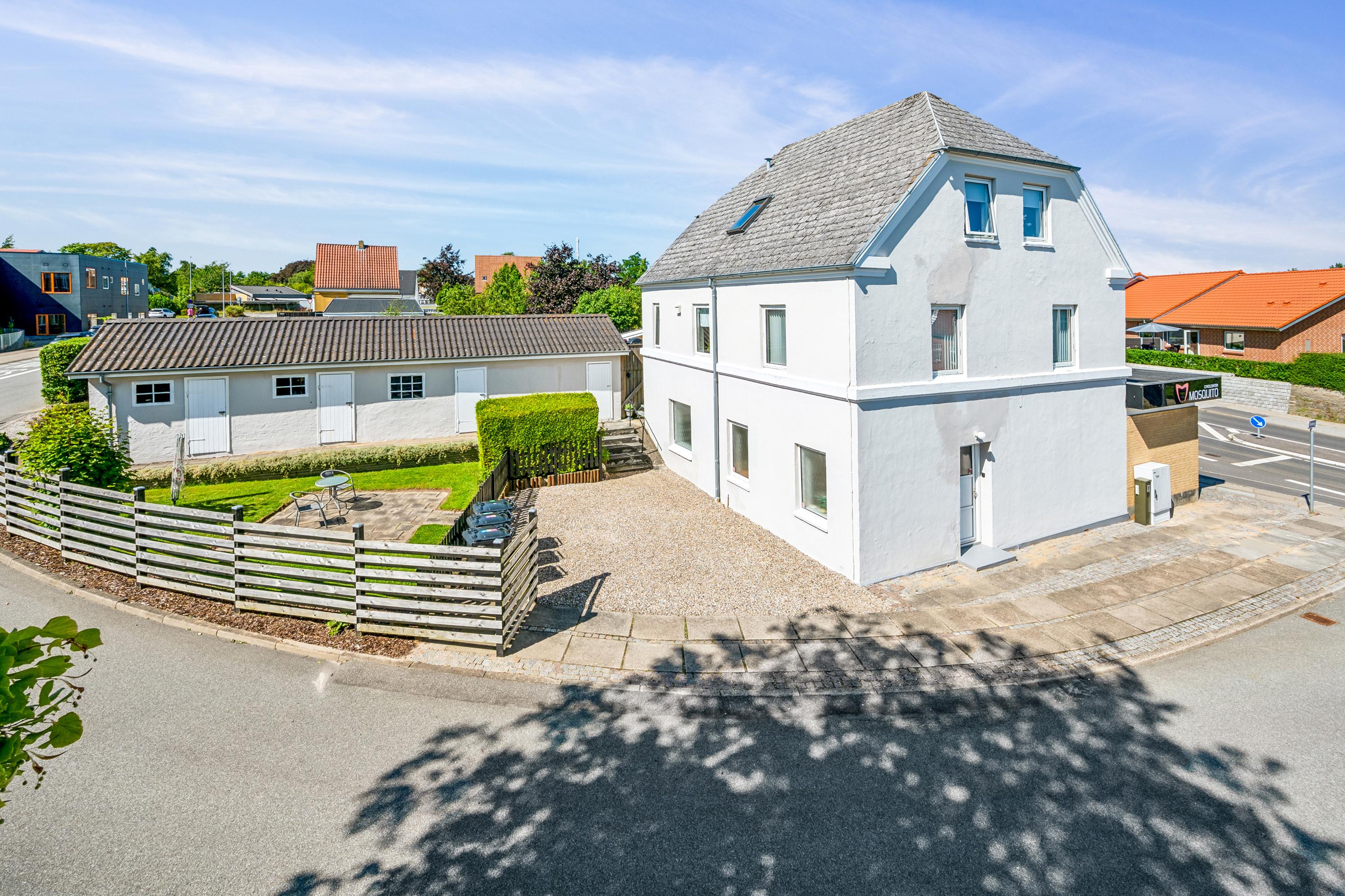 Denne spændende ejendom er beliggende centralt i Hørning og rummer mange muligheder.