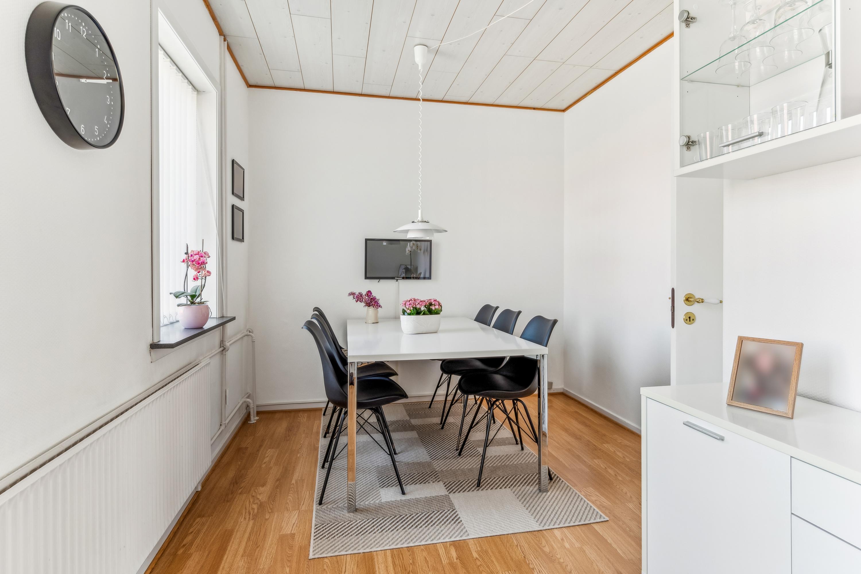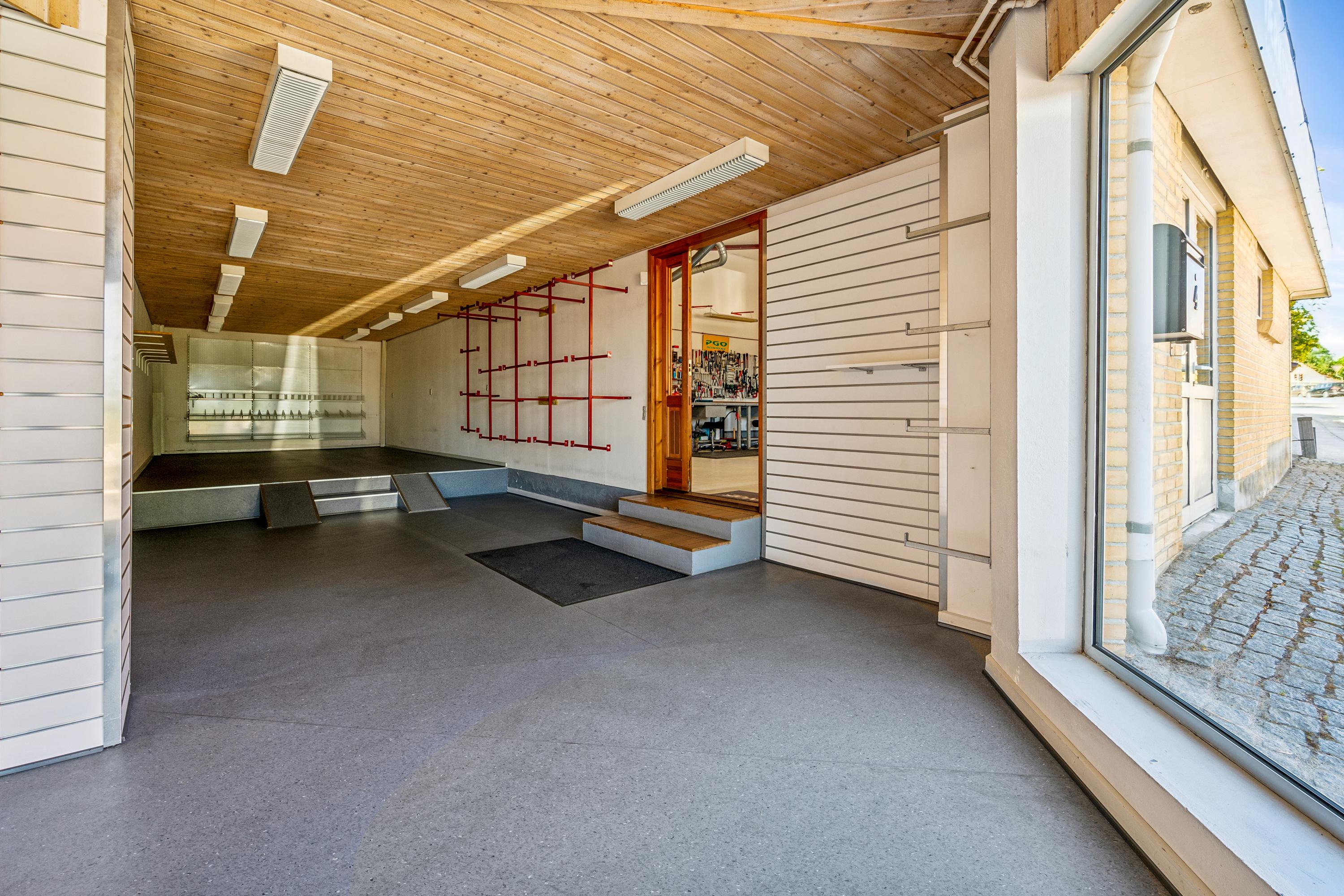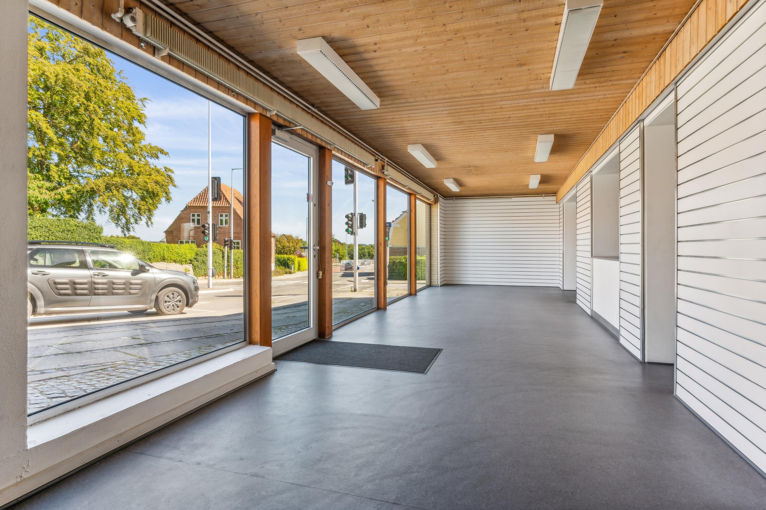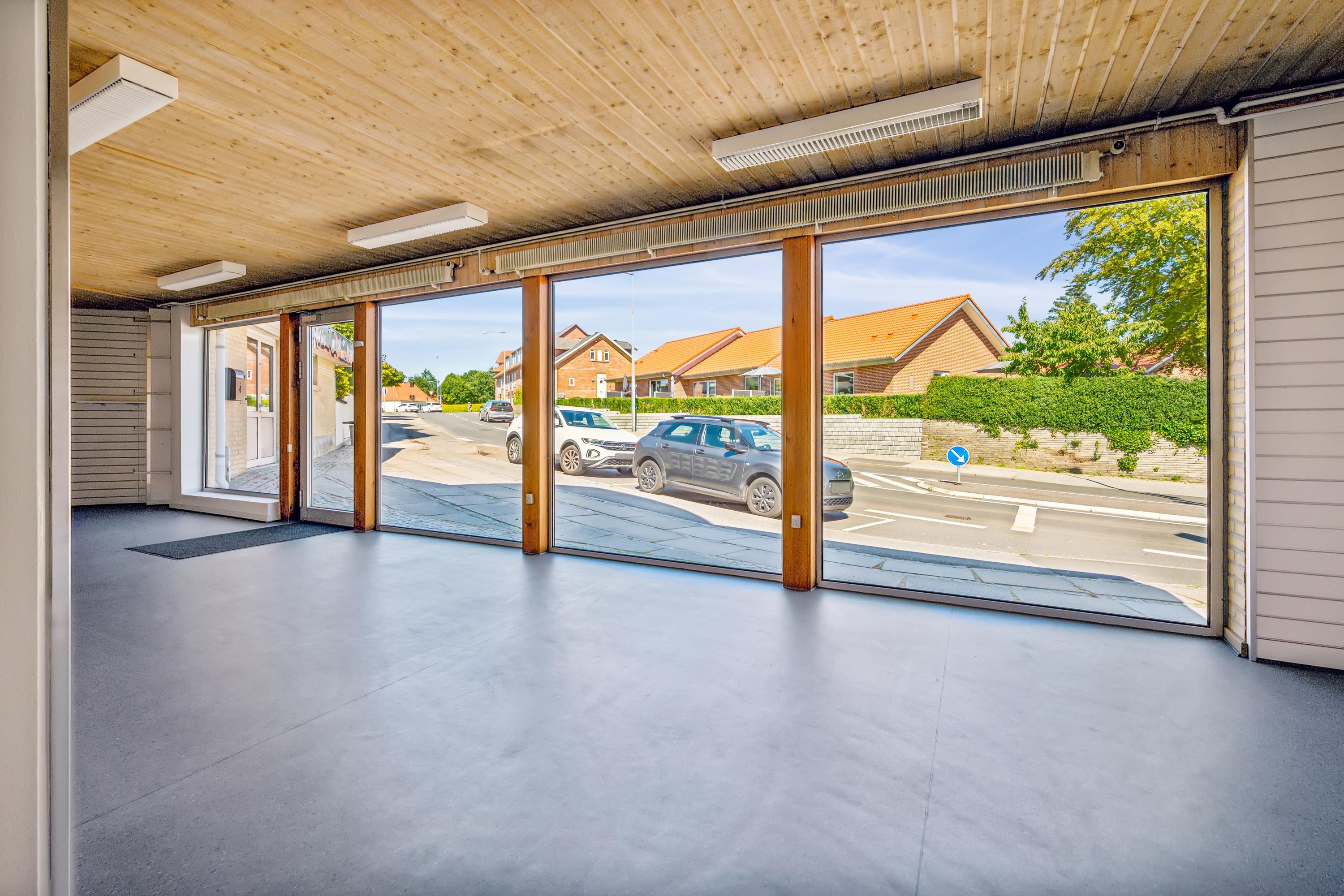 Her får du bl.a.: 135 m2 bolig på 1. og 2. sal, 251 m2 erhverv i stueetagen med butik og værksted/lager, 59 m2 dobbelt garage beliggende i forlængelse af erhvervsdelen og 46 m2 udhus, der er opdelt i flere