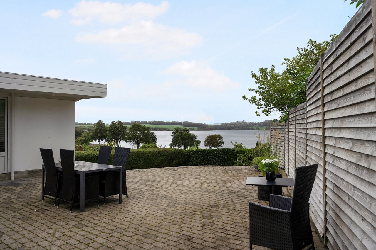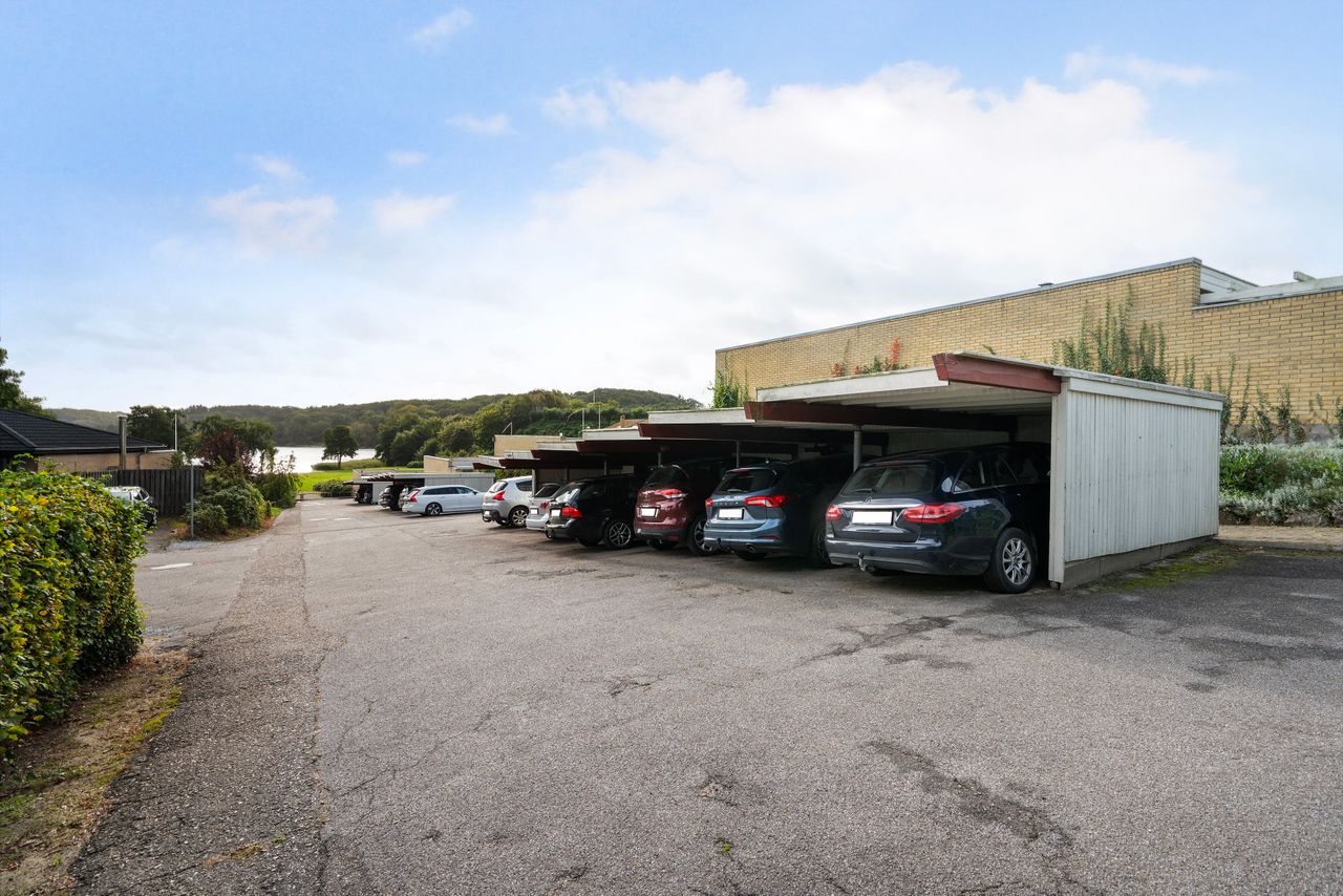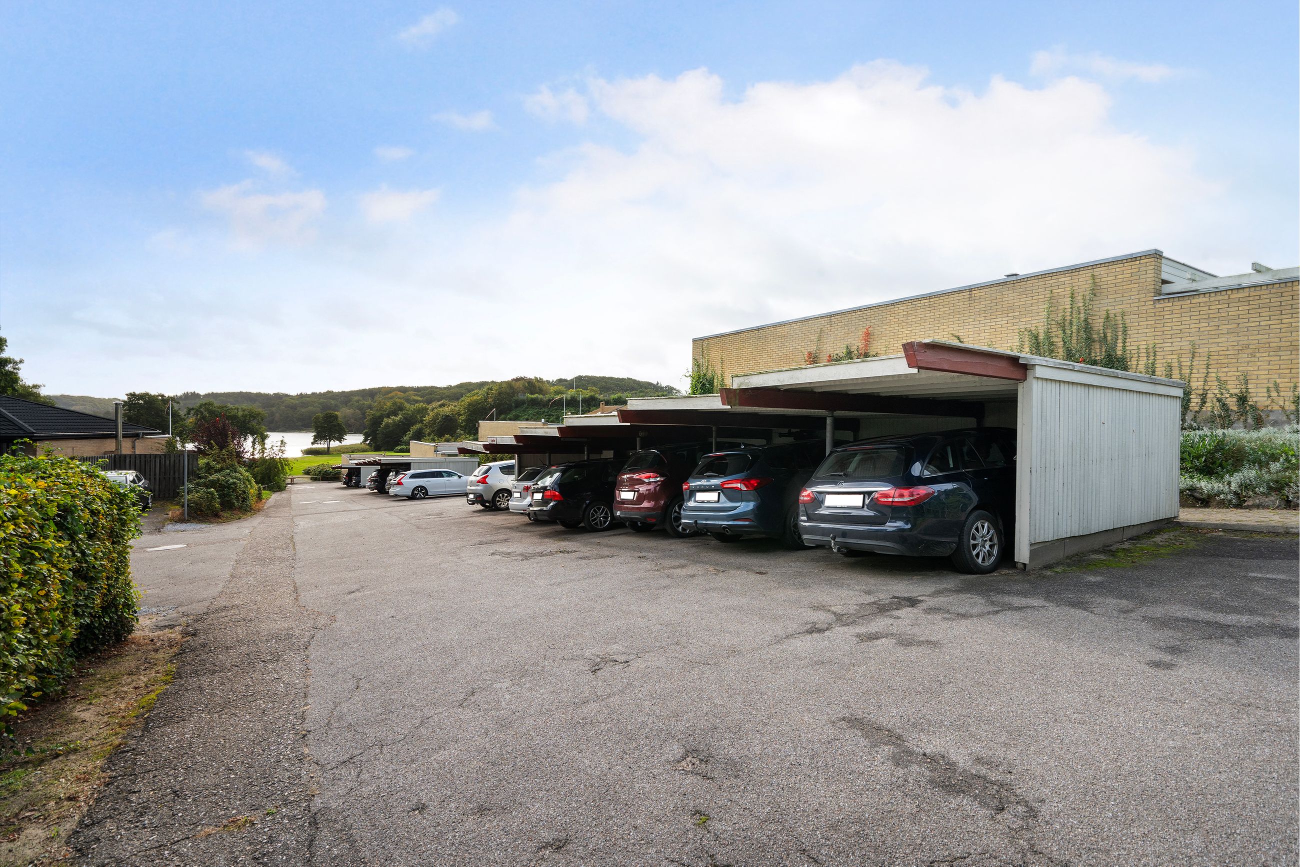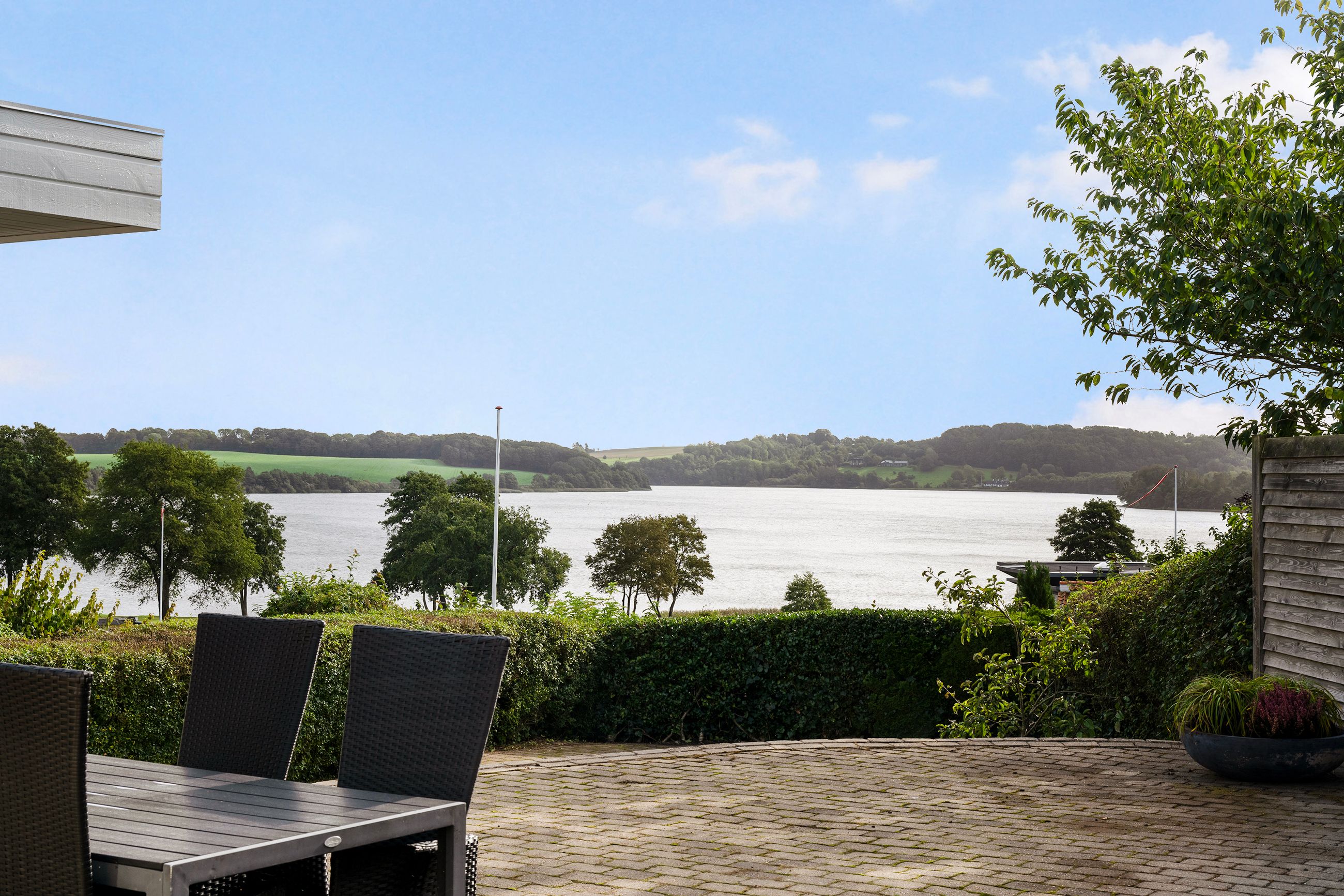I boligen ankommer du til en rummelig entré, og er du gæst bliver du naturligvis straks vist ind i stuen eller alrummet, hvor du bliver mødt med en helt uimodståelig udsigt. Fra entré-en er der adgang til boligens gæstetoilet, der er indrettet i en tidløs stil og der er også adgang til køkkenet, der indeholder et yderst velholdt Hanstholm køkken fra ca. 2013 med cooker, alm. ovn og en dampovn, der fremstår som nærmest ny samt en smuk bordplade i valnød. Der er alt i hårde hvidevarer i køkkenet. Fra køkkenet er der adgang til alrum og stue og fra tv-stuen er der adgang til kælderen. Fra fordelingsgangen er der adgang til boligens badeværelse, hvor du finder både badekar og bruseniche, alt i et tidløst design. Fra gangen er der endvidere adgang til et soveværelse med meget skabsplads, et værelse og et bryggers med gode skabe, bord og vaskemaskine, og her finder du også boligens anden ind-/udgang. Kælderen rummer: Et dejligt stort rum, der kan være gildesal, fitnessrum eller hvad man nu kan have brug for god plads til og herudover er der et dejligt viktualierum. Boligen er meget velholdt såvel ude som inde, og de flisebelagte terrasser gør den nem at passe. Det er bare havemøblerne, et par krukker og parasollen, der skal findes frem i sommer sæsonen. Terrasserne mod søen er syd/øst vendte, og den overdækkede terrasse på den anden side af boligen er nord/vest vendt. Du kan med andre ord altid finde et godt spot, alt efter vind og vejr. Der er et godt redskabsrum til cyklen og grillen mm. Beliggenheden tæt ved Stilling Sø giver en fantastisk udsigt ud over søen samt de omkransende skove og grønne områder. Gode muligheder for motion med cykel-, løbe- eller gåture på omkringliggende stier. Kort afstand til indkøb, daginstitutioner og skole. På bare 8 min. er man på butiksgaden i Skanderborg og Strøget i Aarhus er kun 17 min. væk. Der er kort afstand til motorvejstilkørslen. Der opsættes nye carporte i 2025, som sælger har betalt. Man har brugsret til egen carport.