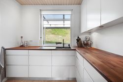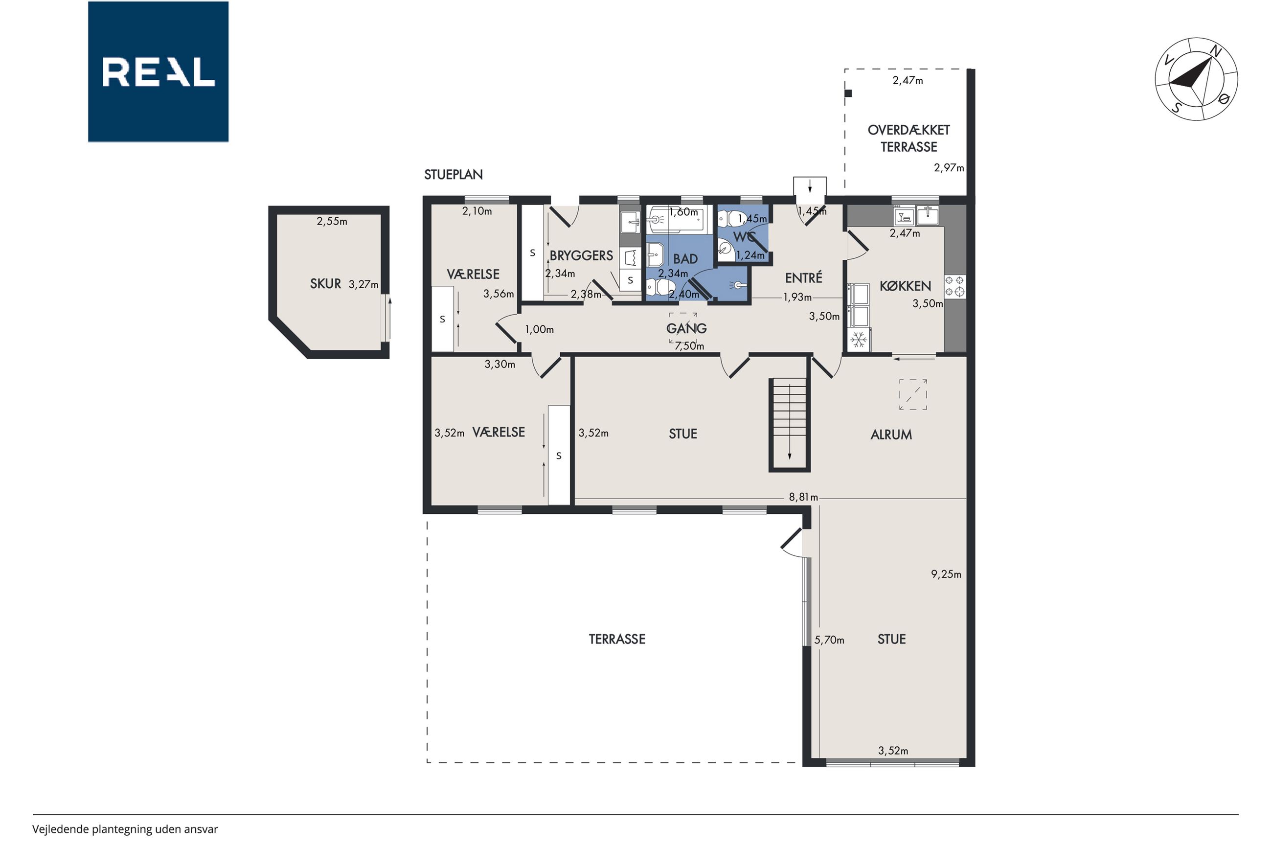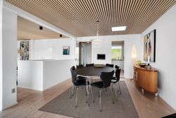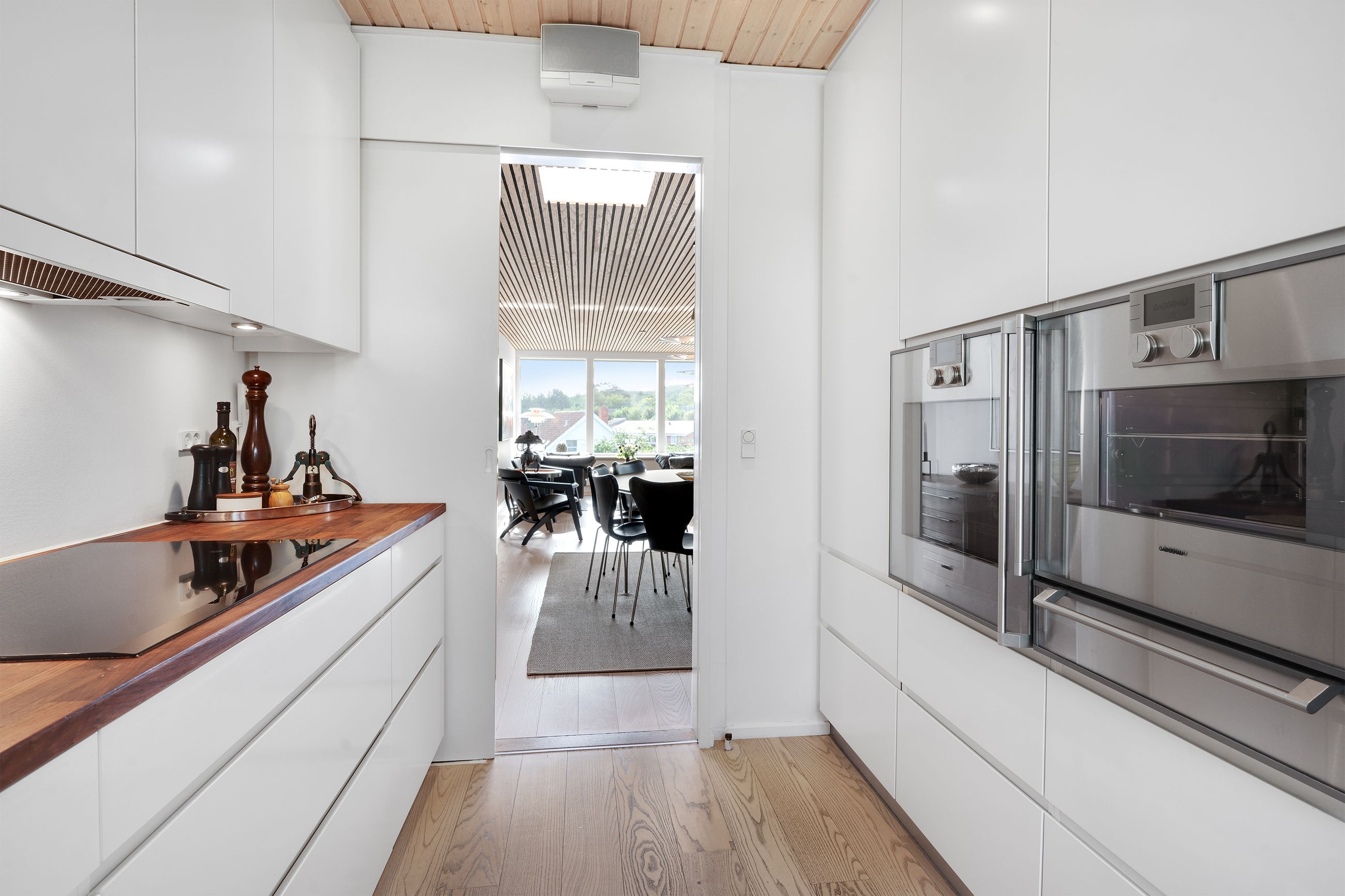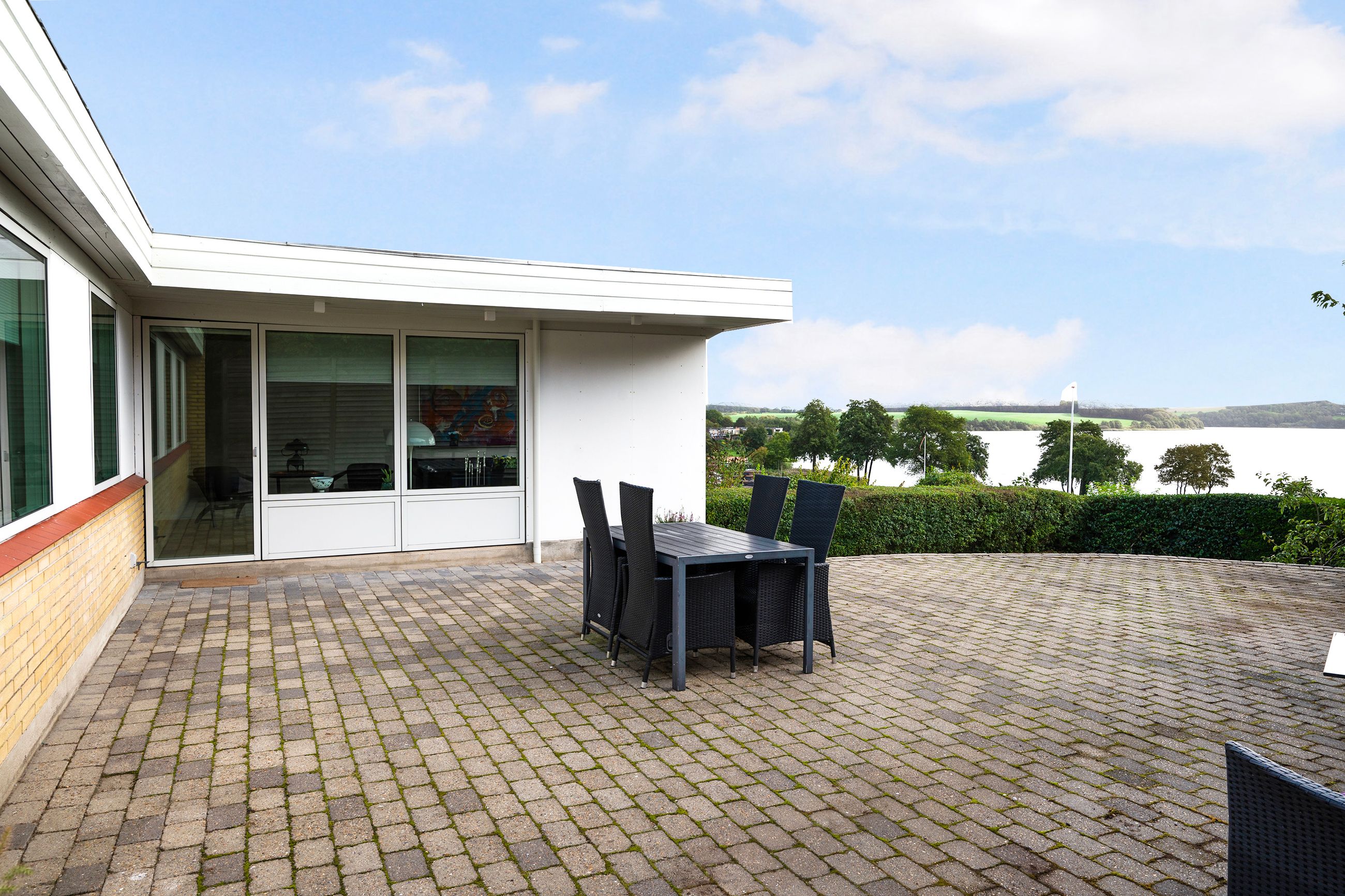 I boligen ankommer du til en rummelig entré, og er du gæst bliver du naturligvis straks vist ind i stuen eller alrummet, hvor du bliver mødt med en helt uimodståelig udsigt. Fra entré-en er der adgang til boligens gæstetoilet, der er indrettet i en tidløs stil og der er også adgang til køkkenet, der indeholder et yderst velholdt Hanstholm køkken fra ca. 2013 med cooker, alm. ovn og en dampovn, der fremstår som nærmest ny samt en smuk bordplade i valnød. Der er alt i hårde hvidevarer i køkkenet. Fra køkkenet er der adgang til alrum og stue og fra tv-stuen er der adgang til kælderen. Fra fordelingsgangen er der adgang til boligens badeværelse, hvor du finder både badekar og bruseniche, alt i et tidløst design. Fra gangen er der endvidere adgang til et soveværelse med meget skabsplads, et værelse og et bryggers med gode skabe, bord og vaskemaskine, og her finder du også boligens anden ind-/udgang. Kælderen rummer: Et dejligt stort rum, der kan være gildesal, fitnessrum eller hvad man nu kan have brug for god plads til og herudover er der et dejligt viktualierum. Boligen er meget velholdt såvel ude som inde, og de flisebelagte terrasser gør den nem at passe. Det er bare havemøblerne, et par krukker og parasollen, der skal findes frem i sommer sæsonen. Terrasserne mod søen er syd/øst vendte, og den overdækkede terrasse på den anden side af boligen er nord/vest vendt. Du kan med andre ord altid finde et godt spot, alt efter vind og vejr. Der er et godt redskabsrum til cyklen og grillen mm. Beliggenheden tæt ved Stilling Sø giver en fantastisk udsigt ud over søen samt de omkransende skove og grønne områder. Gode muligheder for motion med cykel-, løbe- eller gåture på omkringliggende stier. Kort afstand til indkøb, daginstitutioner og skole. På bare 8 min. er man på butiksgaden i Skanderborg og Strøget i Aarhus er kun 17 min. væk. Der er kort afstand til motorvejstilkørslen. Der opsættes nye carporte i 2025, som sælger har betalt. Man har brugsret til egen carport.