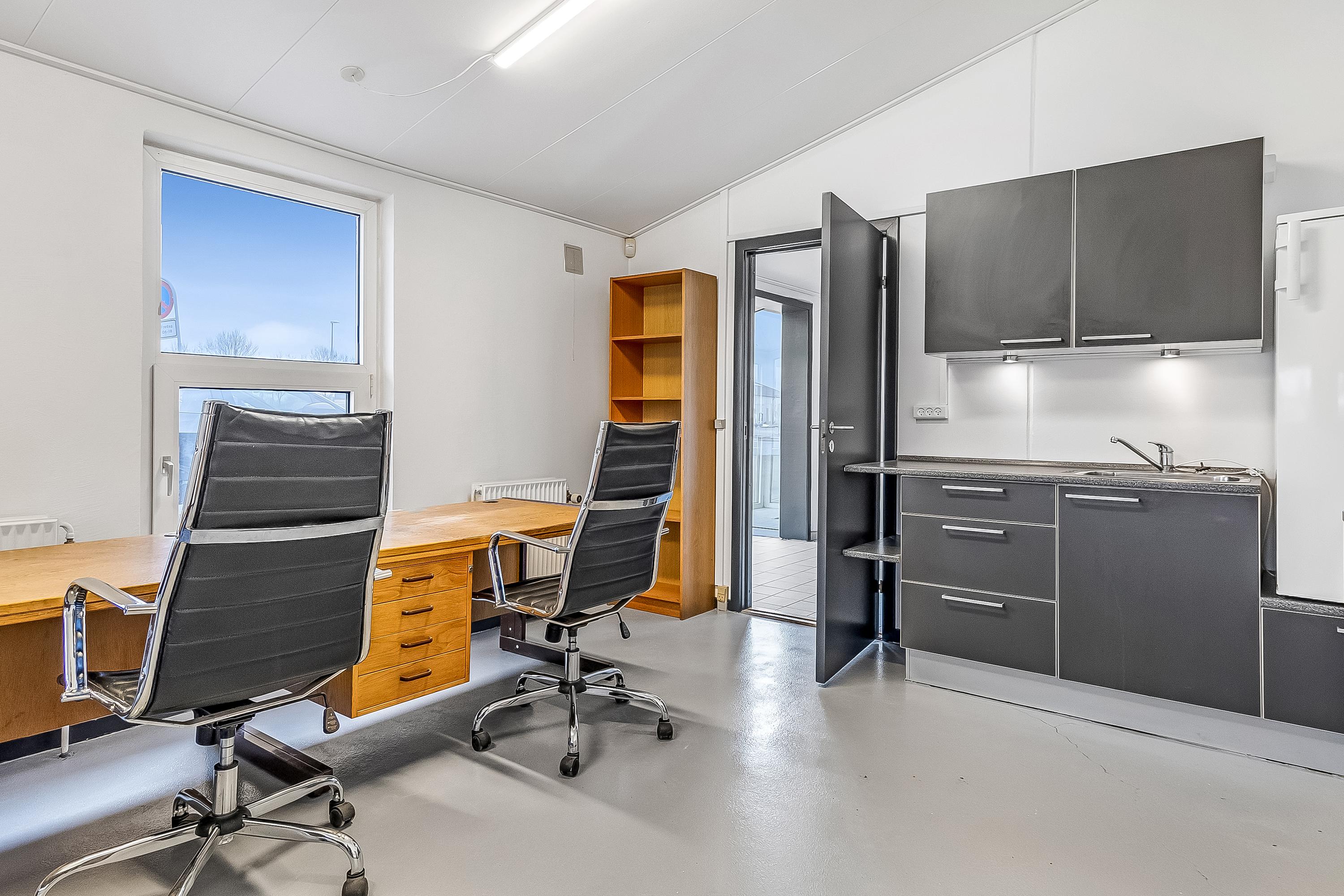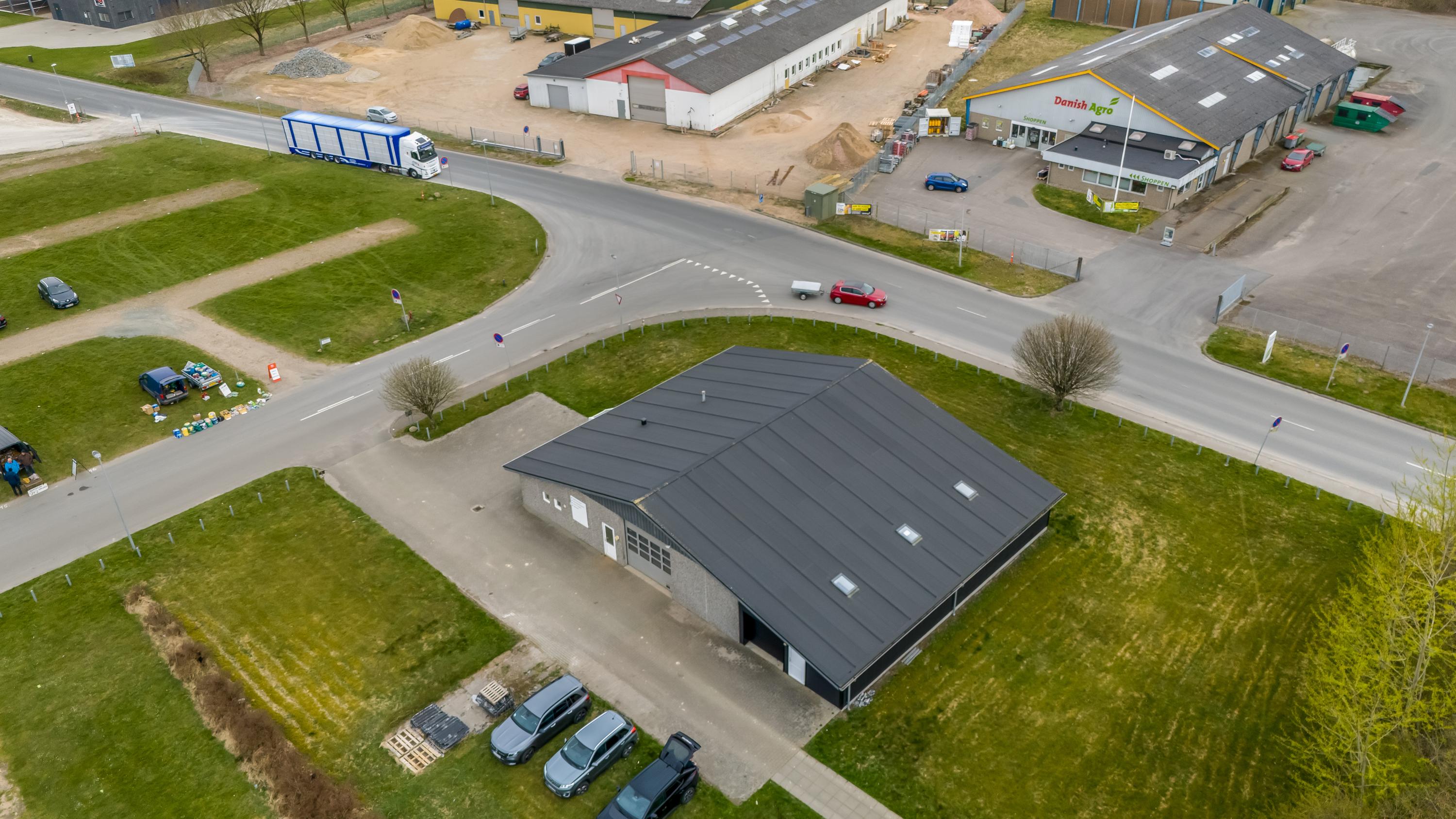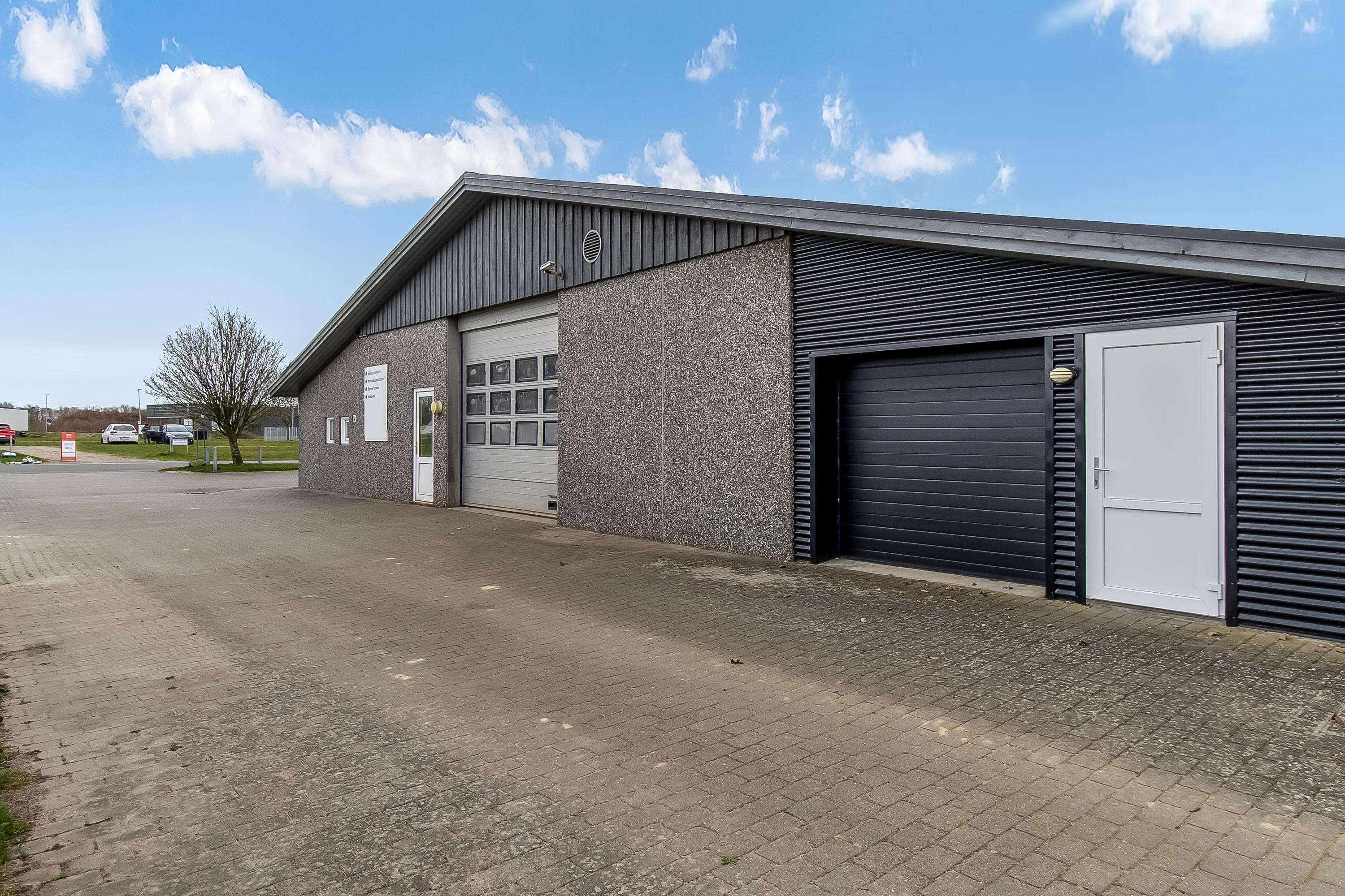 Eksklusiv lagerbygning med listetæk, ledhejseporte og gode kontor og toilet faciliteter. Perfekt til lokal håndværker eller mindre produktionsvirksomhed.