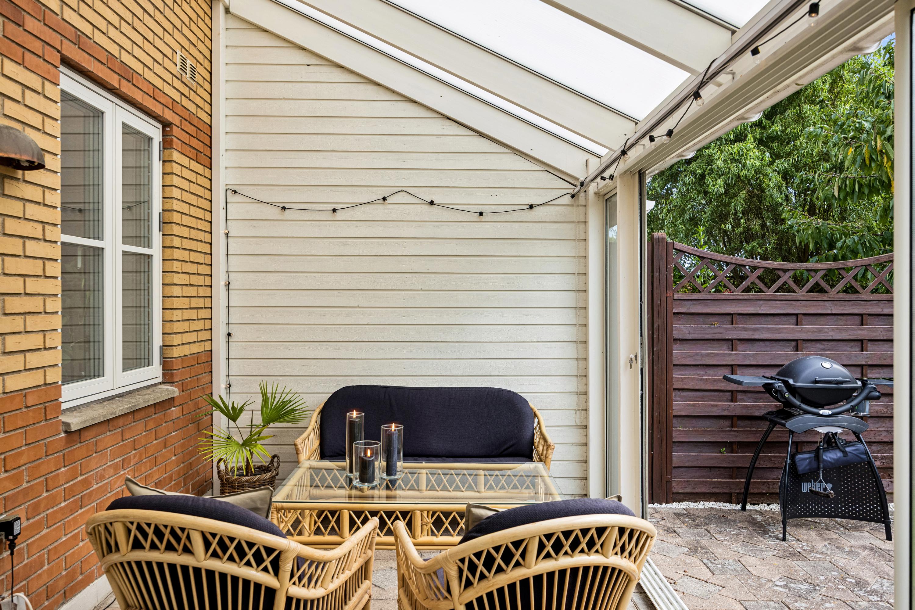 Velkommen til denne indbydende villa fra 1989, der tilbyder et boligareal på 118 kvadratmeter fordelt over to fulde plan. Ejendommen er beliggende i et charmerende rækkehuskvarter, hvor moderne opdateringer møder klassisk design. Alle døre og vinduer blev udskiftet i 2021, hvilket sikrer en