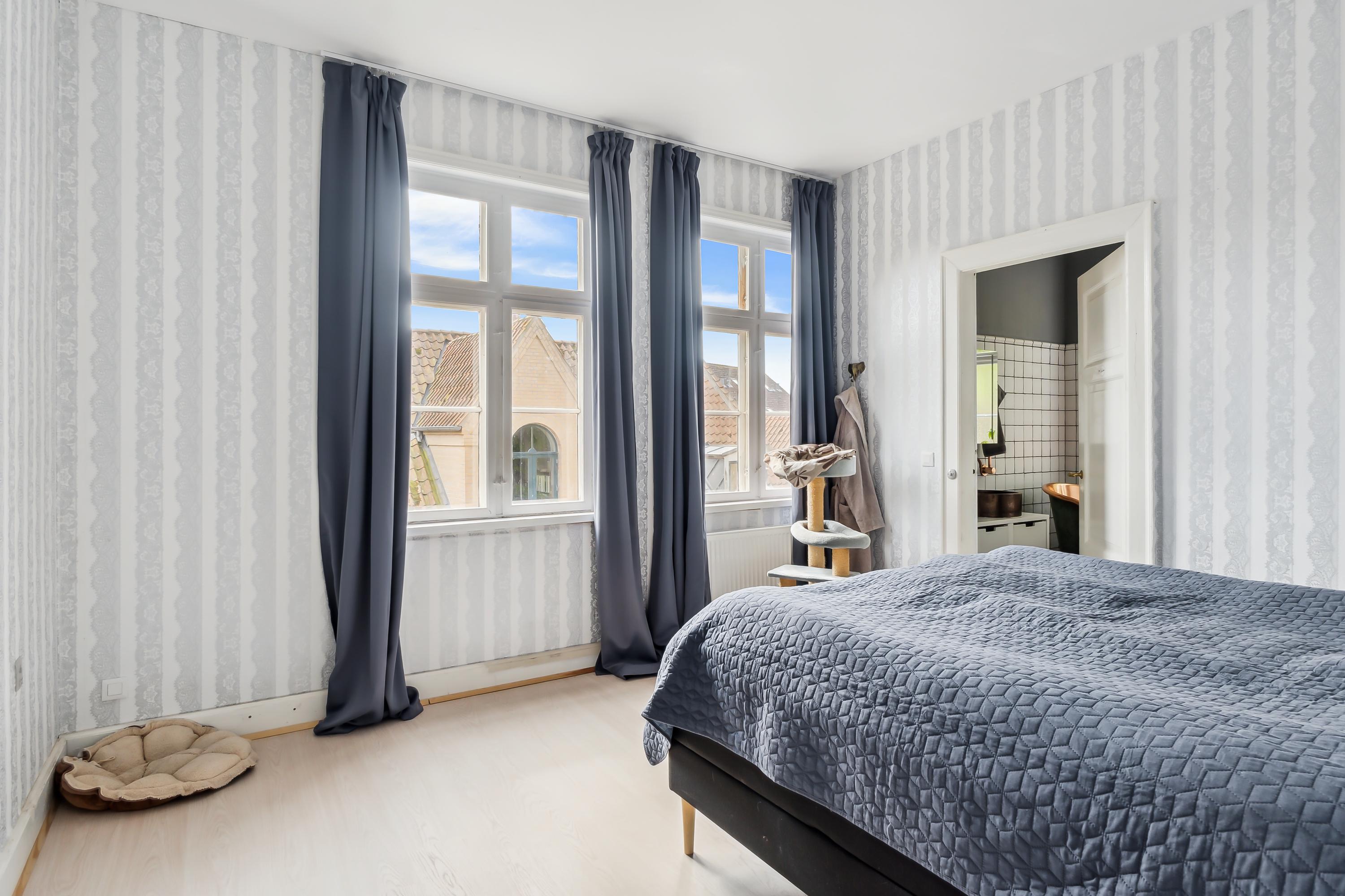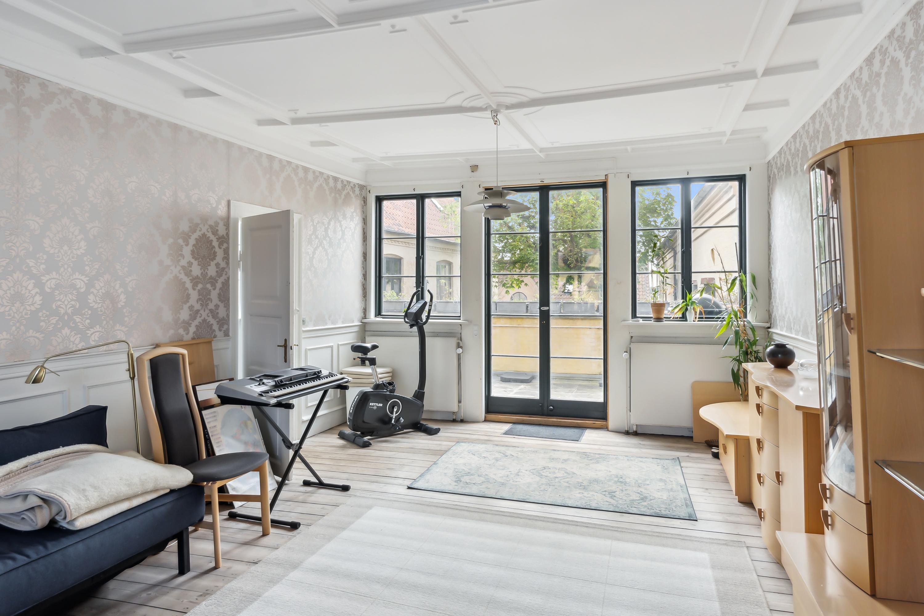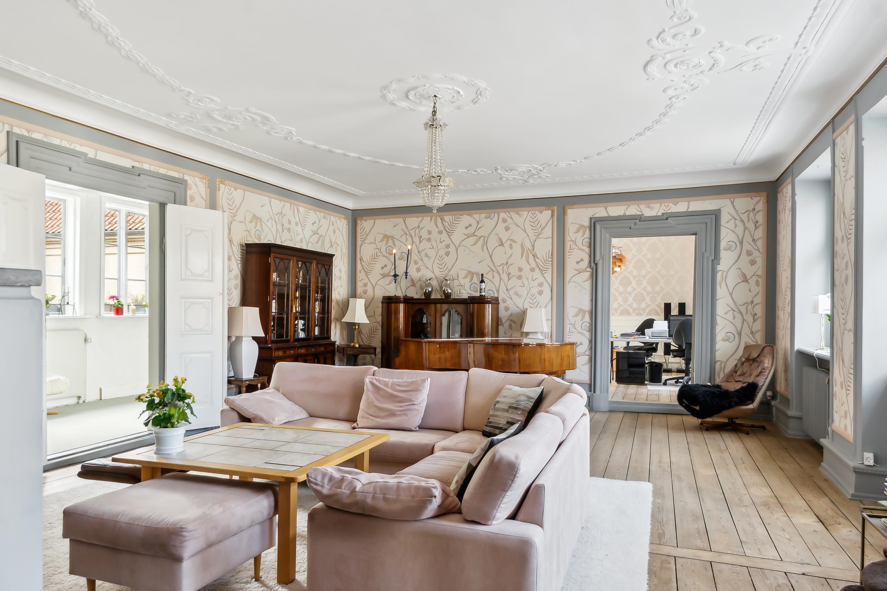 - 310 m2 bolig på 1. sal med stuk, højt til loftet og tagterrasse