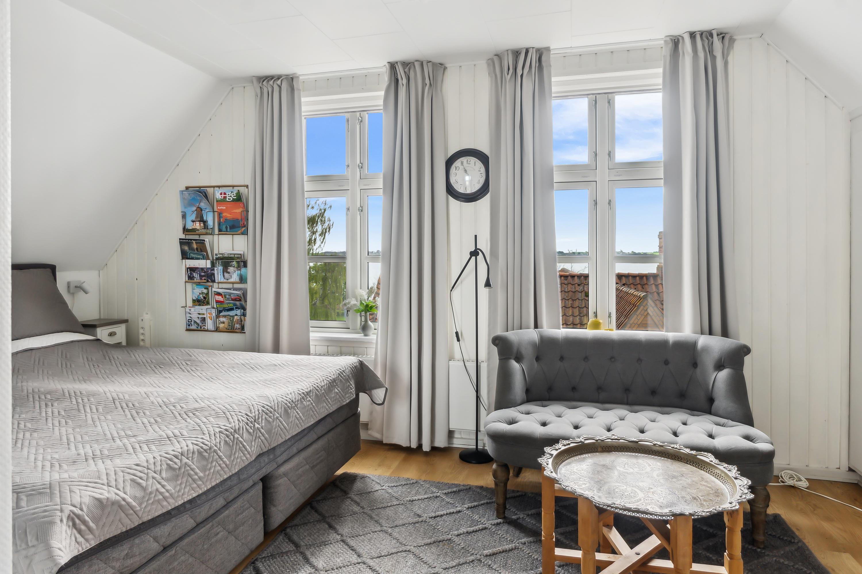 Historisk fredet ejendom med sjæl og moderne komfort – bolig og erhverv med udsigt til torv og vand